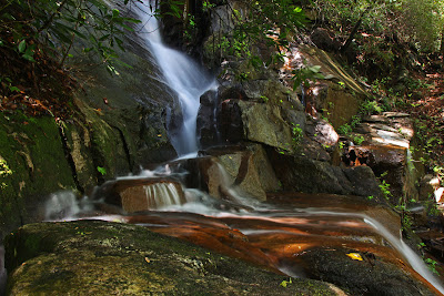 Several tributaries flow down the rocks and across the trail. During wet weather, many of these make for some fairly impressive waterfalls. Unfortunately, the trail is right up against them making it tough to compose a good photo. The bright sunlight which was now overhead did not help matters.